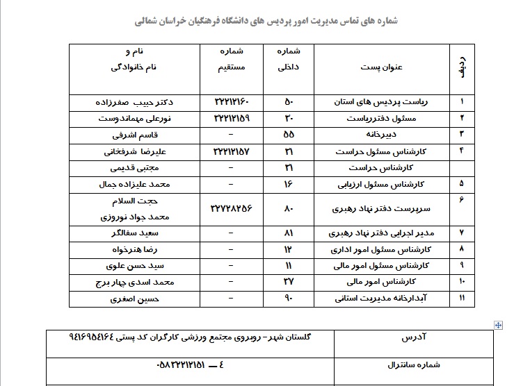 مدیریت امور پردیس های خراسان شمالی