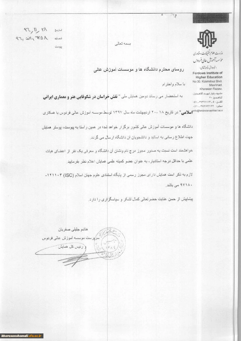 امتیاز دهید : همایش ملی نقش خراسان در شکوفایی هنر و معماری ایرانی - اسلامی 3 شنبه 12 اسفند 1396 ساعت 10:24