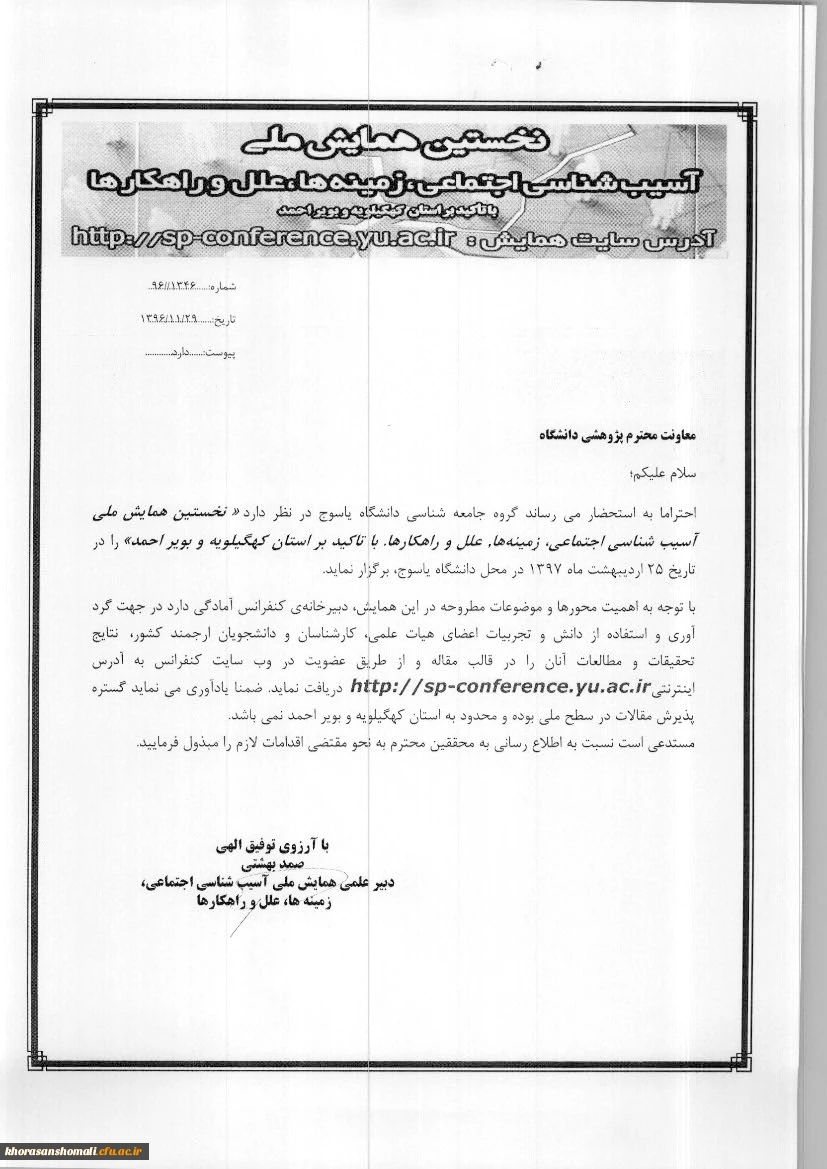 امتیاز دهید : همایش ملی آسیب شناسی اجتماعی، زمینه ها، علل و راهکارها(دانشگاه یاسوج) 2 شنبه 12 اسفند 1396 ساعت 10:27
