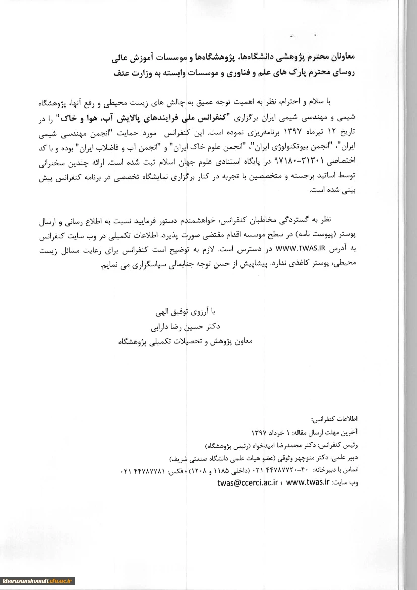امتیاز دهید : برگزاری کنفرانس ملی فرایندهای پالایش آب و هوای و خاک 2 دوشنبه 31 اردیبهشت 1397 ساعت 7:58