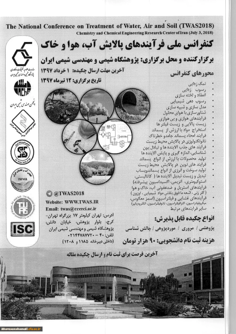 امتیاز دهید : برگزاری کنفرانس ملی فرایندهای پالایش آب و هوای و خاک 3 دوشنبه 31 اردیبهشت 1397 ساعت 7:58