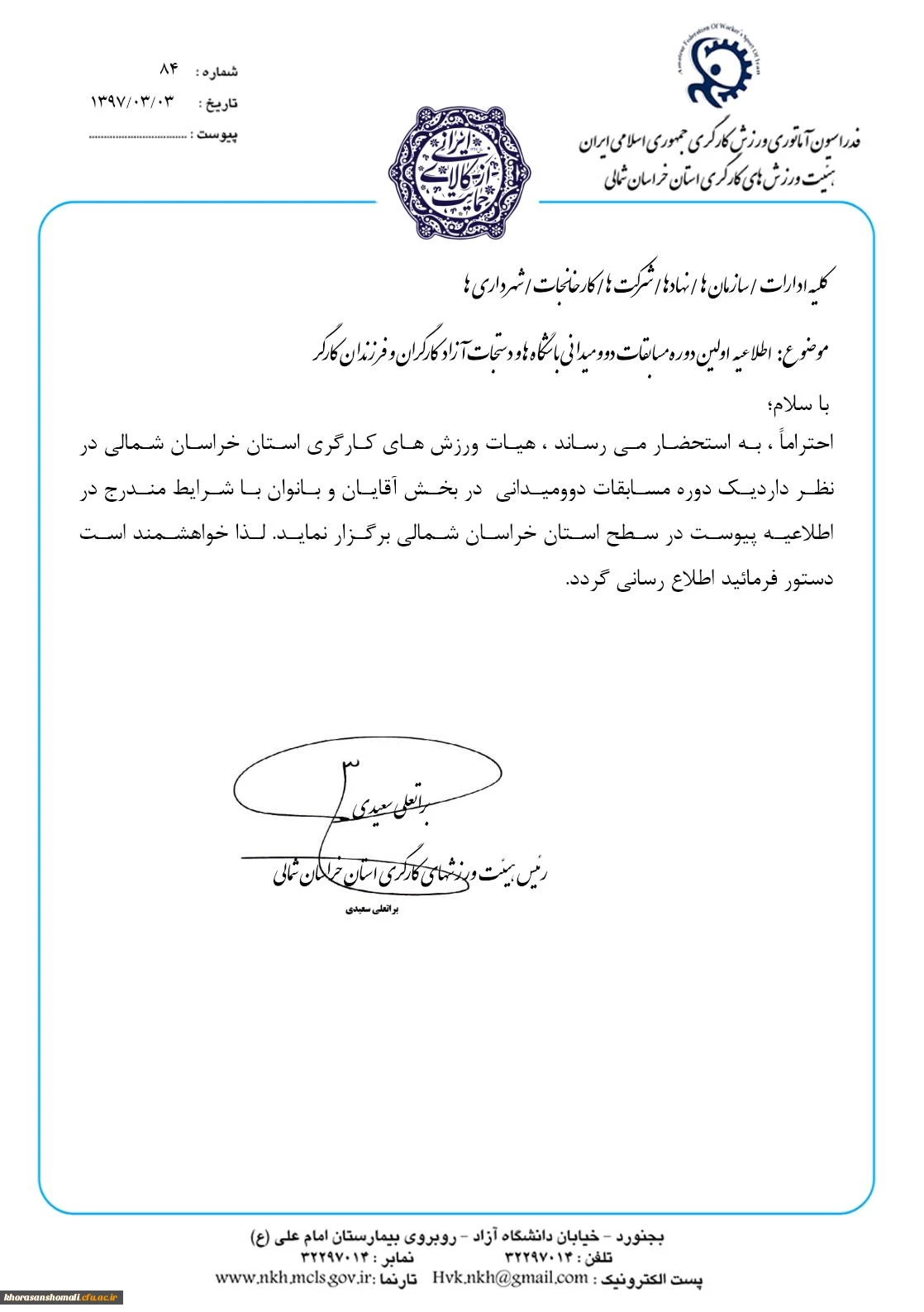 اطلاعیه ورزشی هیات کارگری استان خراسان شمالی 2