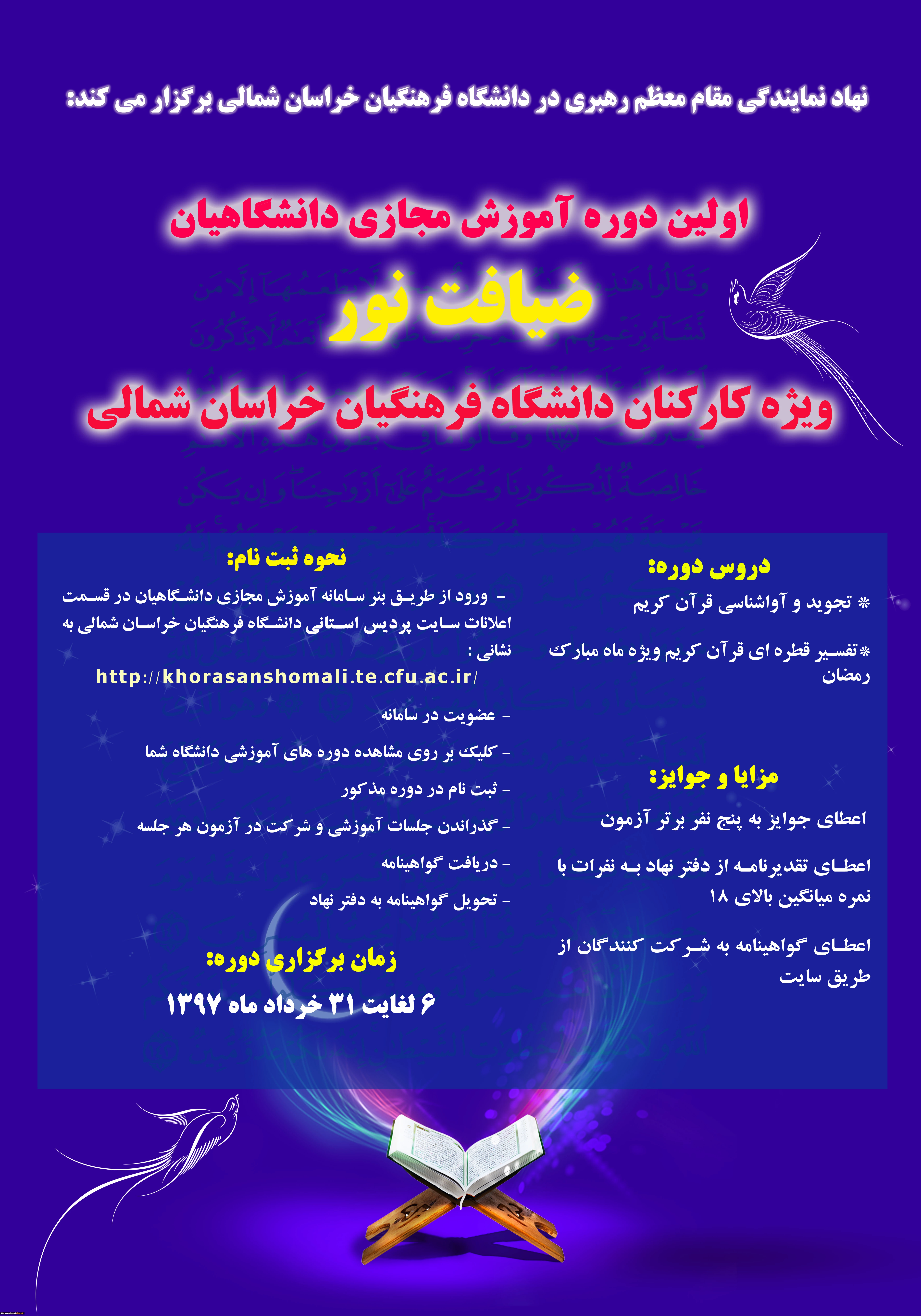 : برگزاری اولین دوره آموزش مجازی دانشگاهیان " ضیافت نور "، ویژه کارکنان دانشگاه فرهنگیان خراسان شمالی 2