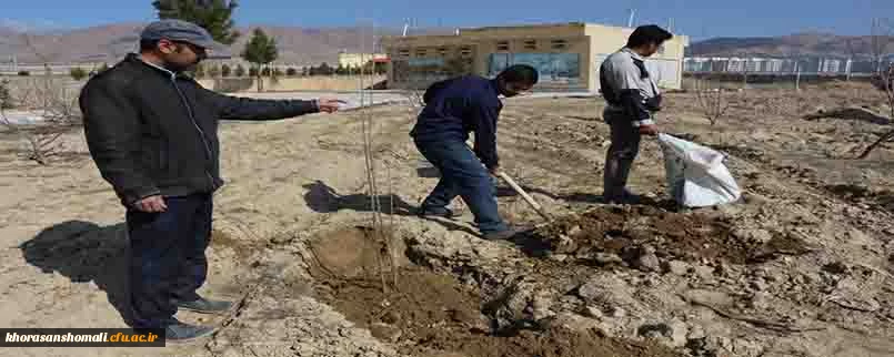 کاشت بیش از 150 اصل نهال درختان مثمر در پردیس های دانشگاه فرهنگیان خراسان شمالی 4