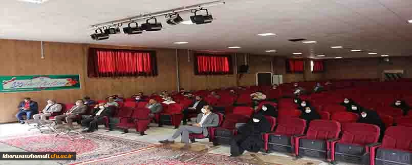 اولین نشست شورای اداری پردیس های دانشگاه فرهنگیان خراسان شمالی در سال 1399 با رعایت فاصله اجتماعی در سالن آمفی تئاتر برگزار شد. 2