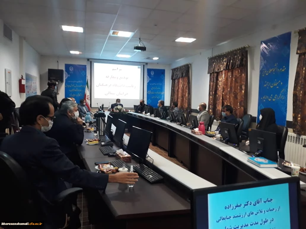 با حضور دکتر انصاری راد معاون دانشجویی دانشگاه فرهنگیان کشور ،مراسم تکریم و معارفه سرپرست مدیریت امور پردیس های دانشگاه فرهنگیان استان خراسان شمالی برگزار شد. 2