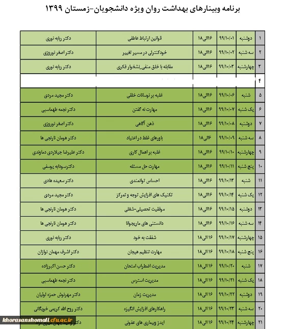 کارگاه های آموزشی آنلاین با هدف ارتقاء بهداشت روان (دوره زمستان 99) ویژه دانشجویان دانشگاه 3