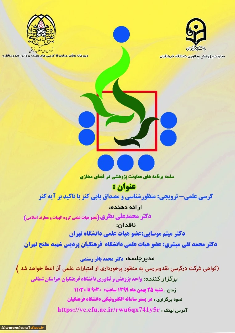 امتیاز دهید : دفتر پژوهش و فناوری دانشگاه فرهنگیان خراسان شمالی برگزار می کند: 2 جمعه 24 بهمن 1399 ساعت 18:45