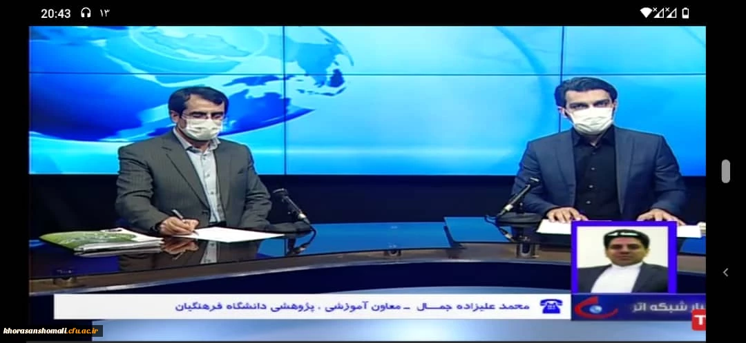" حضور مجازی معاون آموزشی، پژوهشی و فرهنگی پردیس امام محمدباقر(ع) دانشگاه فرهنگیان خراسان شمالی در برنامه گفتگوی ویژه خبری به مناسبت هفته معلم و دهه سرآمدی آموزش" 2