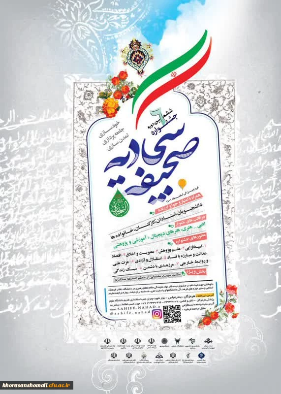 امتیاز دهید : ششمین دوره جشنواره صحیفه سجادیه خودسازی، جامعه پردازی، تمدن سازی 2 چهارشنبه 9 آذر 1401 ساعت 12:36